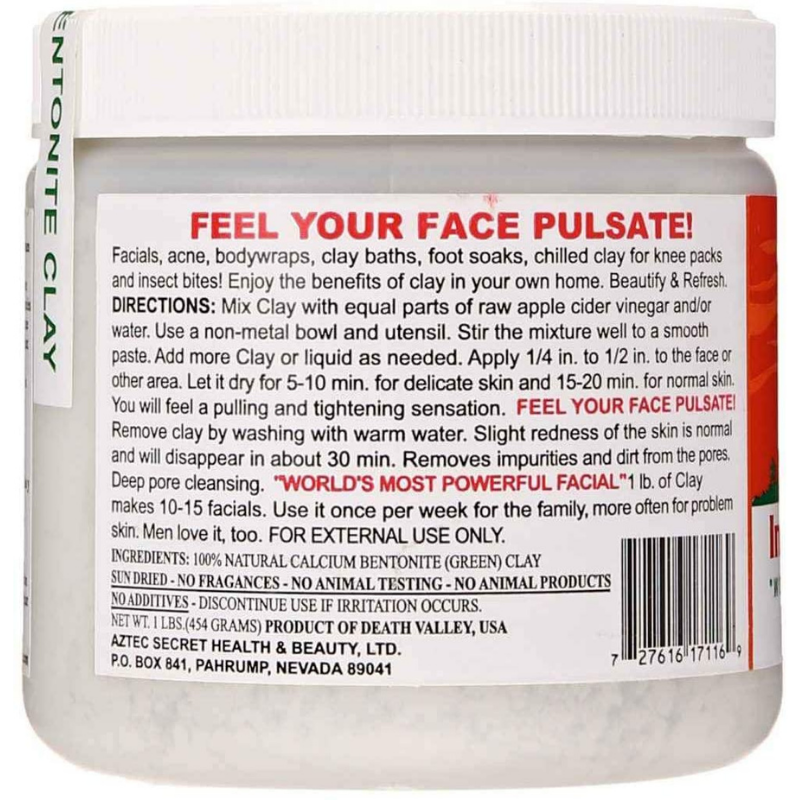 - Ce masque d'argile est parfait pour les soins du visage, l'acné, les enveloppements corporels, les bains de pieds et les bains d'argile. Vous pouvez également l'utiliser à froid pour les genouillères afin de réduire la douleur et contre les piqûres d'insectes pour atténuer les démangeaisons et l'enflure! L'argile curative indienne aidera à éliminer les impuretés de la peau et vous laissera avec une sensation de fraîcheur, de propreté et de beauté!