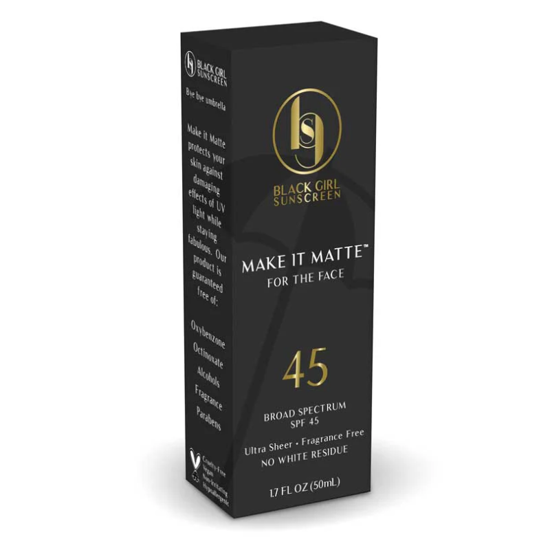 Make it Matte est un SPF 45 à large spectre spécialement conçu pour les femmes de couleur avec une formule infusée d'ingrédients naturels tels que l'aloès, le squalène et le beurre de karité qui aident à hydrater, apaiser et guérir votre peau.