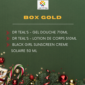 Découvrez notre BOX NOËL GOLD, une sélection premium de soins essentiels pour chouchouter votre peau durant les fêtes. Cette coffret luxe réunit le gel douche Dr Teal's 710ml aux propriétés apaisantes, la lotion corporelle Dr Teal's 510ml pour une hydratation intense, et la crème solaire Black Girl Sunscreen 50ml spécialement formulée pour les peaux foncées. Un ensemble complet alliant nettoyage délicat, nutrition profonde et protection solaire, idéal pour offrir ou s'offrir un moment de bien-être absolu.