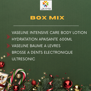 Découvrez notre sélection festive BOX NOEL MIX, conçue pour les soins complets de votre peau et de vos lèvres. Cette boîte réunit une brosse à dents électrique sonic haute performance pour un nettoyage optimal, associée à la vaseline blanche apaisante de 20,3 oz offrant une hydratation profonde et durable. Complétez votre routine avec le baume à lèvres original Vaseline Lip Therapy (0,6 oz), formulé pour nourrir et protéger vos lèvres délicates. Un ensemble harmonieux pour une hygiène et une hydratation de qualité professionnelle.