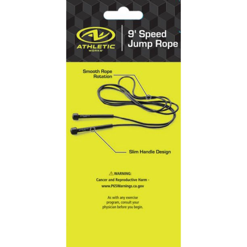 - Obtenez une séance d'entraînement agréable et intense dans le confort de votre propre maison avec cette corde à sauter de vitesse Athletic Works de 9 pi. Il est doté d'une conception ergonomique à poignée mince pour l'équilibre et la vitesse. La rotation douce et sans frottement de cette corde à sauter rapide assure des rotations plus rapides afin que vous puissiez brûler plus de graisse. Pour des entraînements cardio incroyables, cet article est le bon choix. Il est suffisamment petit et léger pour que vous puissiez l'emporter avec vous au parc, à la plage, en vacances et plus encore. Cette corde à sauter Athletic Works aide à augmenter votre agilité, votre coordination et votre endurance, tout en maintenant une bonne santé. Il est idéal pour les boxeurs, les combattants MMA et d'autres types d'athlètes et de guerriers du week-end.