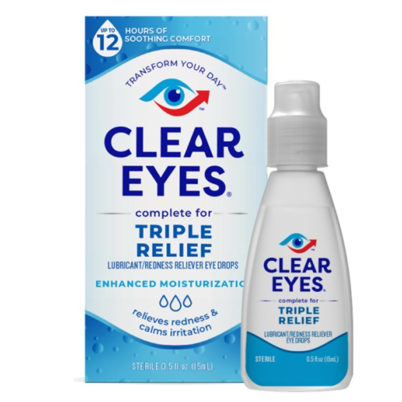 Les gouttes ophtalmiques Clear Eyes Triple Relief procurent un soulagement complet des yeux secs, rouges et irrités. Clear Eyes Triple Relief Eye Drops contient des lubrifiants hydratants améliorés pour apaiser et