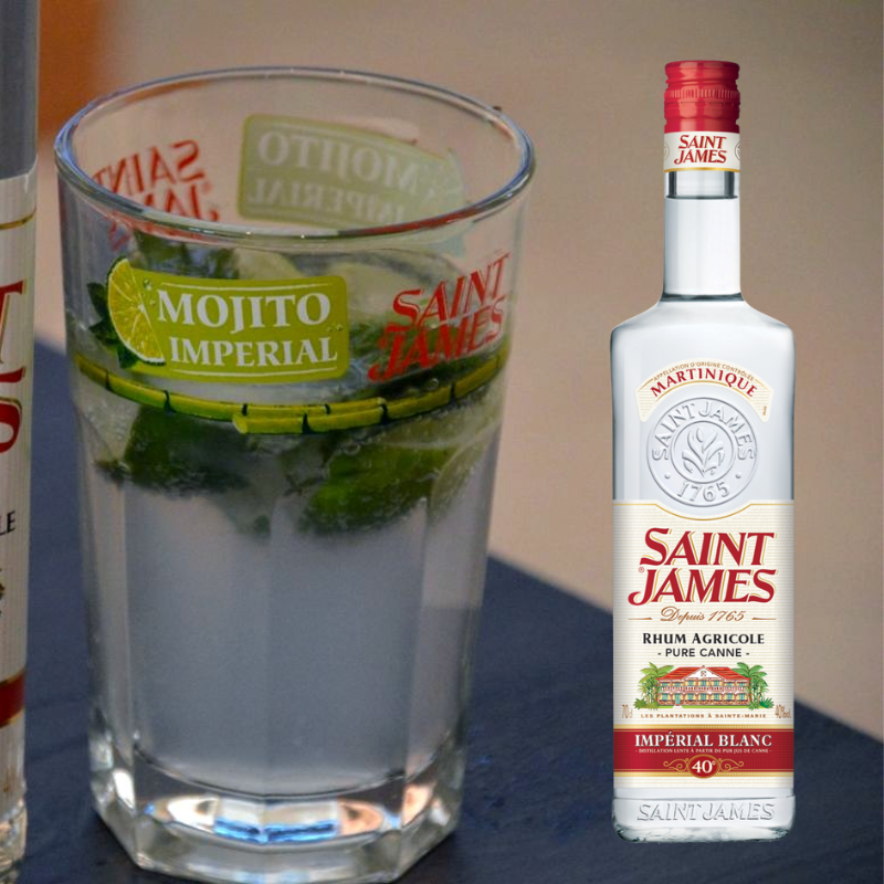 Le rhum agricole A.O.C Martinique SAINT JAMES Impérial Blanc allie la puissance de l'alcool et les arômes de la canne fraîchement coupée, avec des notes florales, fruitées et légèrement épicées. Il est idéal pour la réalisation de vos cocktails, notamment le Mojito Impérial.