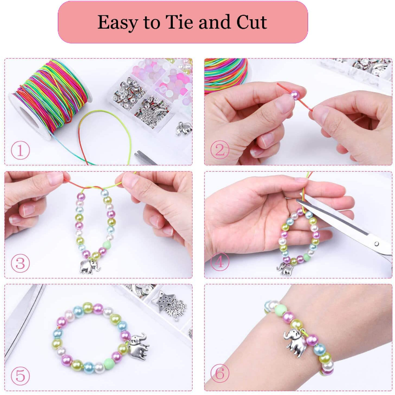 - Nombreuses applications : ficelle élastique pour bracelets, perles, travaux manuels, sacs à cordon, bracelets, bijoux en perles de poney, nœuds pour cheveux et sangles de chapeau de fête.