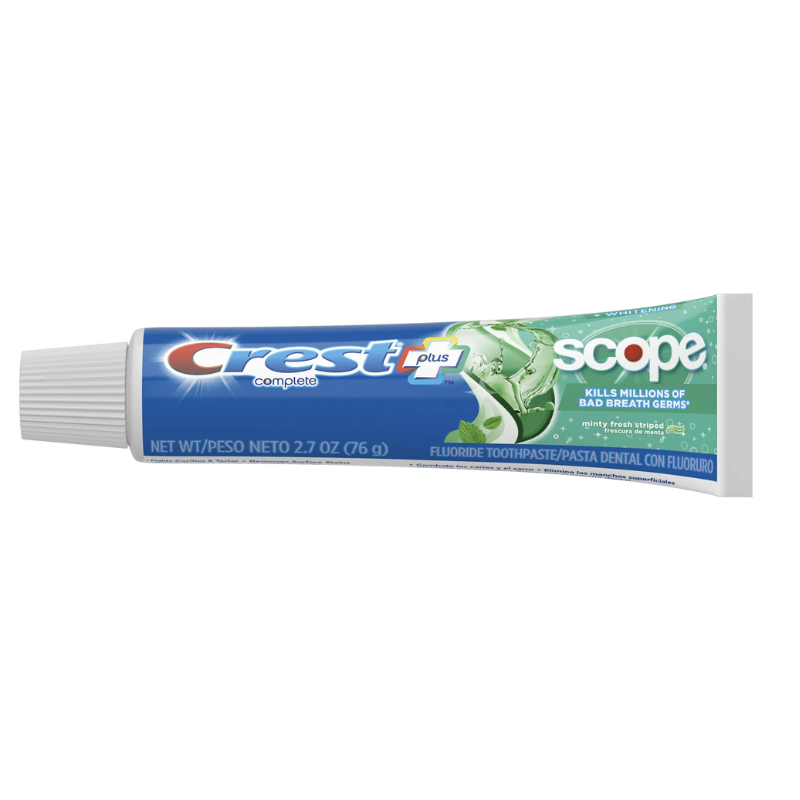 Obtenez la fraîcheur de Scope dans un dentifrice. Le dentifrice blanchissant complet Crest + Scope offre les avantages du dentifrice Crest avec en plus la fraîcheur de Scope. Tuez des