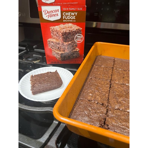 - Le mélange Duncan Hines Chewy Fudge Brownie Mix donne des brownies riches et moelleux qui deviendront certainement un favori de la famille. La pâte à brownie onctueuse et veloutée facilite la préparation de brownies au fudge parfaits à chaque fois. Ajoutez simplement de l'eau, des œufs et de l'huile végétale au mélange à pâtisserie et mélangez. Verser dans un moule et cuire au four pendant le temps recommandé dans les instructions. Préparez ce mélange de brownies pour faire des brownies décadents avec glaçage ou ajoutez des coupes de beurre de cacahuète pour des desserts spéciaux. Vous pouvez également l'utiliser pour créer des créations amusantes comme des bouchées de brownie qui constituent d'excellentes collations et friandises à partager.