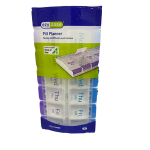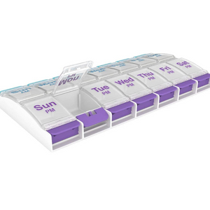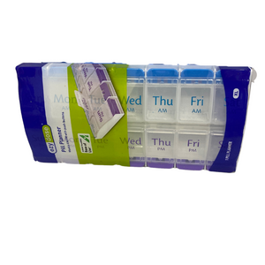 - Ce pilulier hebdomadaire AM/PM est parfait pour programmer vos médicaments hebdomadaires. Son design compact et son couvercle transparent sont simples à utiliser et vous aident à suivre vos médicaments tout au long de la semaine. Ce pilulier de 7 jours est conçu pour une utilisation facile. Il a un fond profilé pour un retrait facile des médicaments.