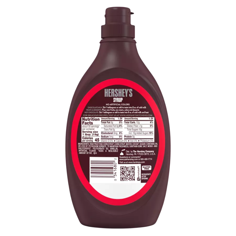 Rien n'est aussi sucré que le goût classique du sirop HERSHEY'S. Utilisez cette bouteille facile à presser pour créer des verres froids de lait au chocolat, des flotteurs au chocolat, des