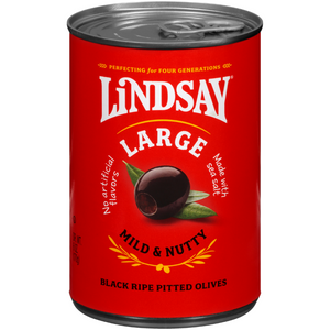 - Lindsay Large Olives noires mûres dénoyautées 6 oz - douces, équilibrées et faites avec amour. Questions de taille. Tout comme la saveur de noisette. Et ces olives noires mûres charnues sont grosses dans les deux. Dégustez-les seuls ou en complément de sandwichs et de salades. Rien de moyen sur ces olives mûres. Sans gluten. Sans cholestérol. Non OGM. Perfectionnement depuis quatre générations. Qualité et goût incomparables ! Pas d'allergènes majeurs. Les olives contiennent de l'huile naturelle qui peut apparaître sur le fruit ou la saumure. Seulement 20 calories par portion !