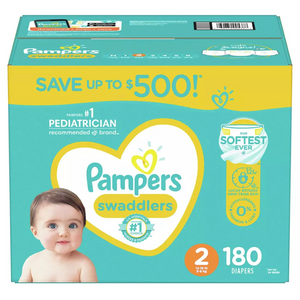 PAMPERS SWADDLERS DIAPERS (SIZE 2) 180 CT