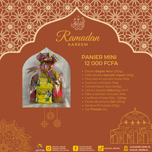 Dattes Deglet Nour (250g) Café soluble Nescafe Classic (50g) Chocolat en poudre Swiss Miss Sucre en morceau (1kg) Corned Bœuf Sara (340g) Lait en poudre Nido(20g) 10CT Pâte à tartiner