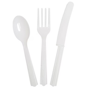 Dressez votre table avec classe grâce à notre ensemble de couverts en plastique blanc ! Avec 8 fourchettes en plastique, 8 couteaux en plastique et 8 cuillères en plastique, ce lot d'ustensiles en plastique est le complément parfait à toute fête d'anniversaire ou autre occasion spéciale. Utilisez ces ustensiles jetables pour dresser votre table à manger, puis jetez-les pour un nettoyage rapide et facile. Trouvez d'autres façons de lancer la fête et achetez le reste de notre vaisselle et de nos décorations de fête blanches abordables.